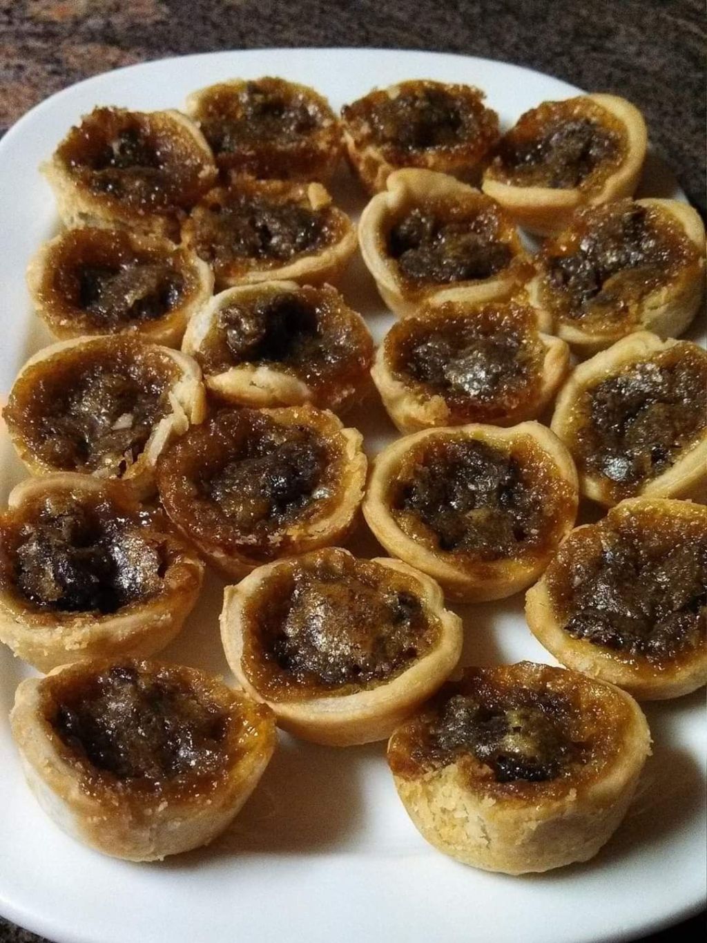 These little Raisin Tarts are a special treat at family gatherings, especially the Thanksgiving and Christmas holidays. I always thought the recipe was passed down from my husband’s Scottish grandmother. When I asked Mom if she had Grandma’s recipe, she told me that it was not her recipe. The recipe actually came from one of Dad’s sisters, Aunt Arlene, who passed away a few years ago. In talking with her two daughters, they confirmed that it was her recipe and were able to find her hand-written recipe (below). Aunt Arlene was a hard-working wife, mother and dairy farmer, along with her husband, Uncle Jerry. She planted and tended to a huge vegetable garden and canned or froze all the produce and fruits that she grew. Where she found the time to make homemade meals, bake a variety of goodies, including these tarts, was always a mystery. Her girls related that Aunt Arlene made these tarts using regular sized cupcake tins. When I make them, I use mini-cupcake tins, which produces a “two-bite” sized tart. Another tart can always be eaten, right? I have also made these tarts using chopped walnuts or pecans instead of raisins. I hope you try these tarts and enjoy them as much as our family has.