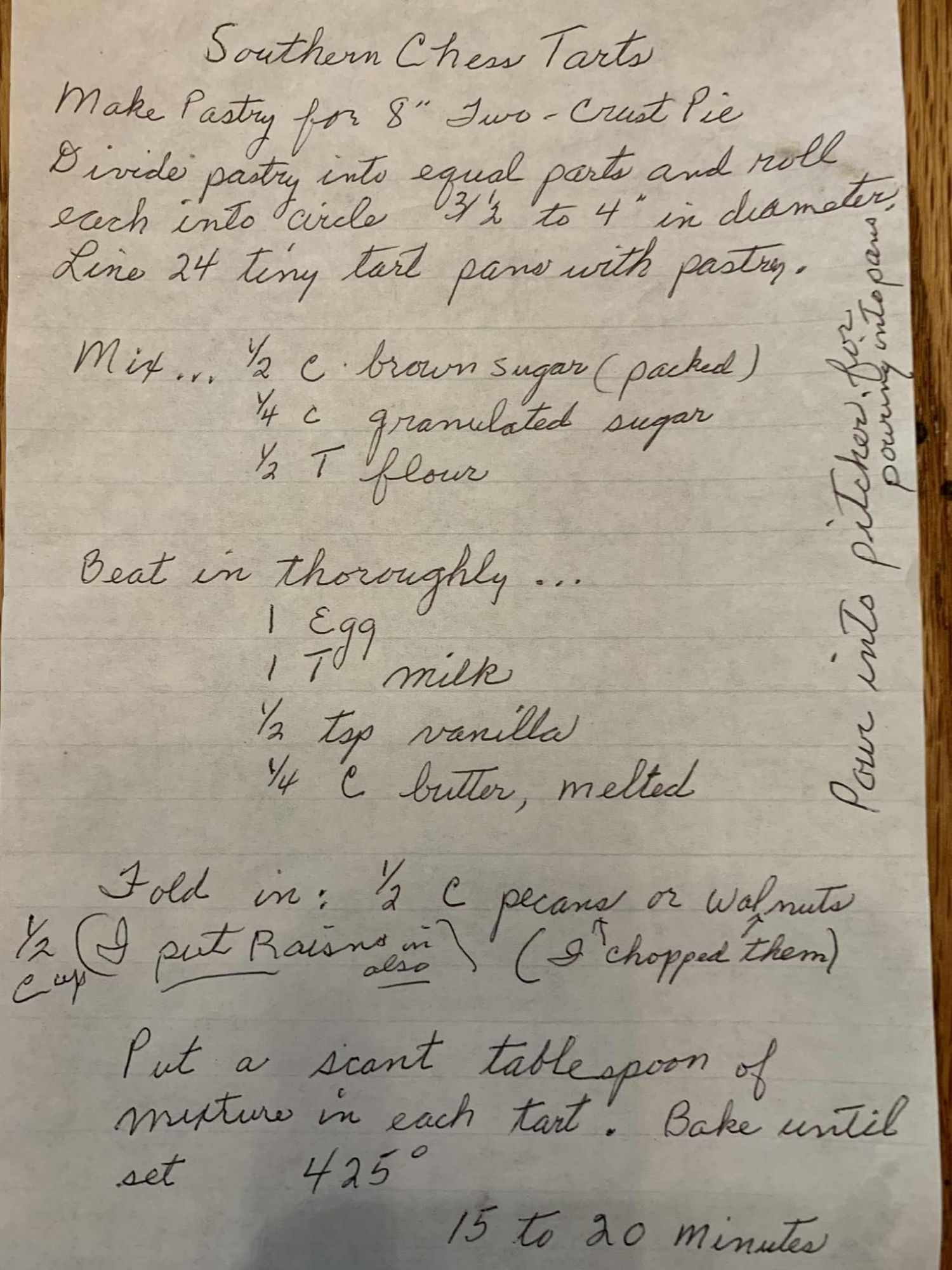 Original Southern Chess Tart Recipe and Aunt Arlene