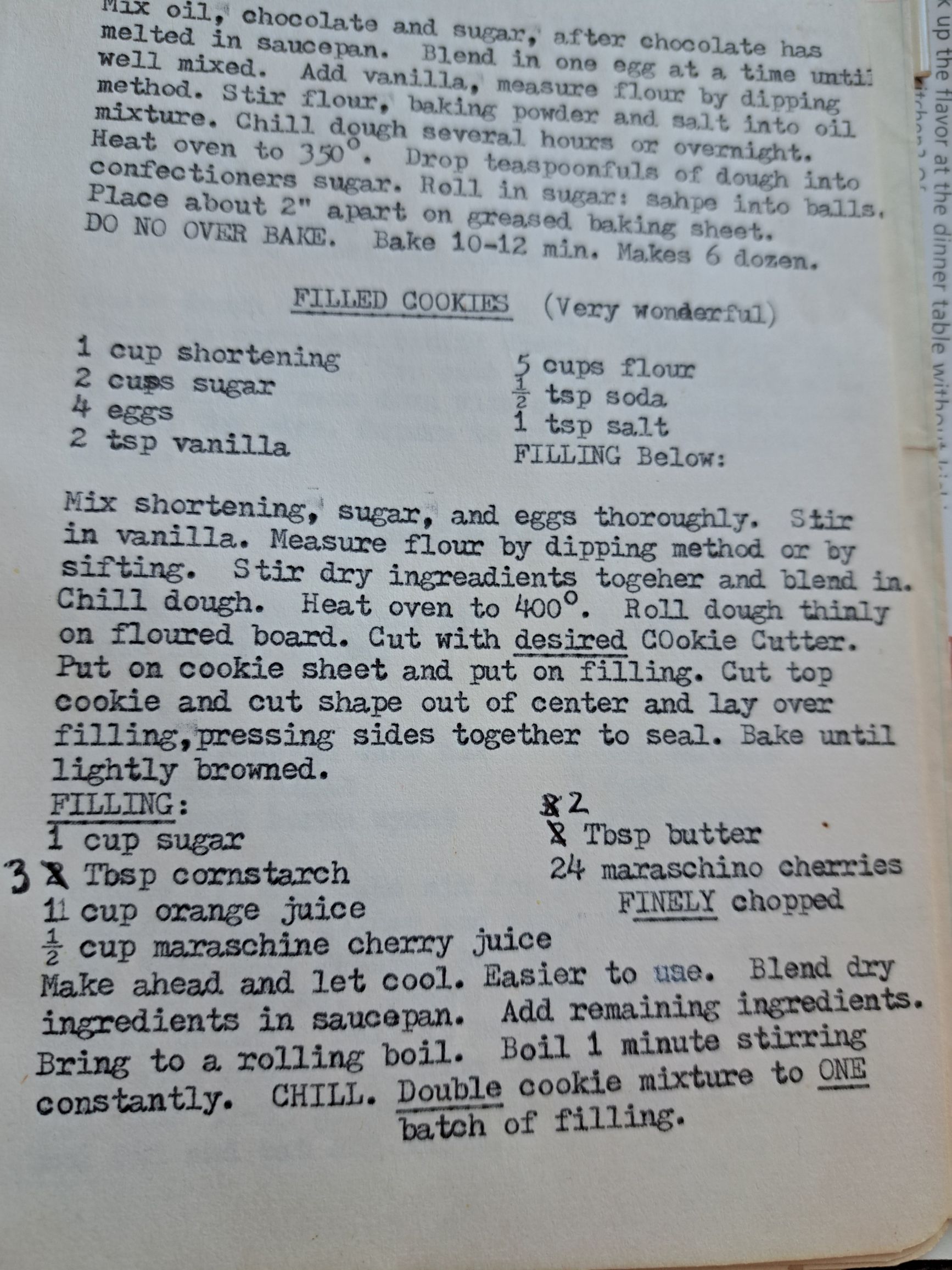 Bottom photo: Original recipe for “Filled Cookies” typewritten by my mom.